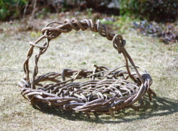 河原や山から採ってきた藤つるで カゴや置物を自由な形に編み上げたもの。