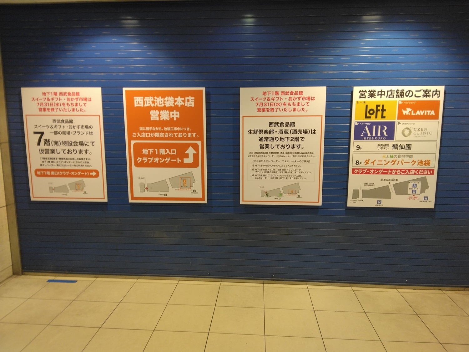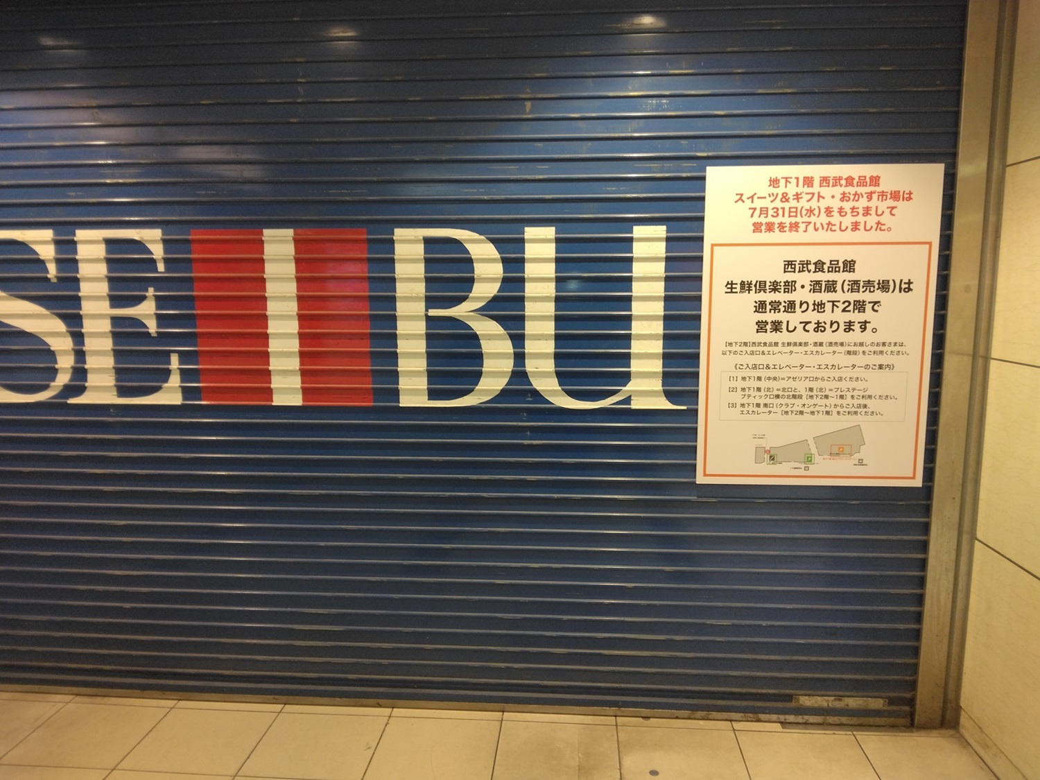 一昨日に池袋へ出掛けた時のことであるが、西武池袋線の地下改札口を出たら、西武池袋本店(百貨店)の地下1階部分はシャッターが閉まっていてビックリ、そのうえ入口場所も営業状況も全く分からずで困惑した
