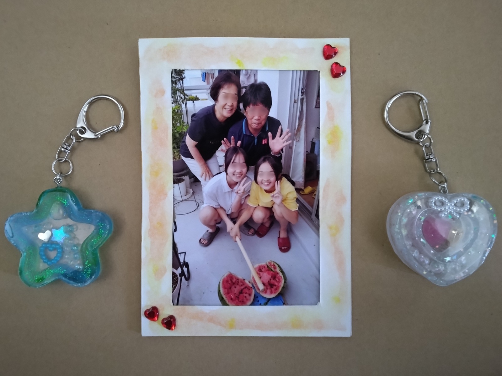 孫二人とバーバとで、デコバージュを大きな板に張り付けて作成した作品