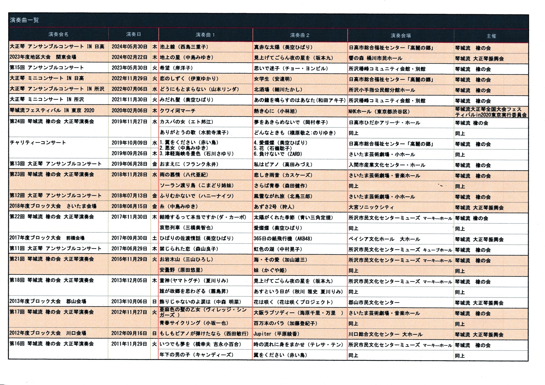 大正琴による「ソロコンサート」という演奏会のものである