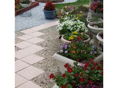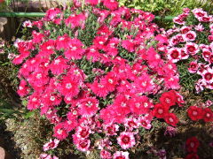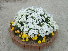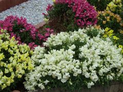 ベコニア [手前:黄・赤系]・ダイアンサス[中央:ピンク・白] 金魚草[左後隅]