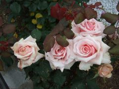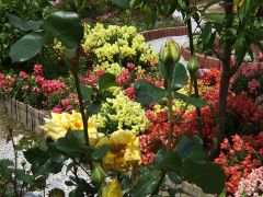 バラ(黄)[手前]・金魚草(ピンク・赤・黄色)