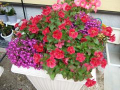 ミムラス[赤]・ロベリア[紫]の寄せ植え