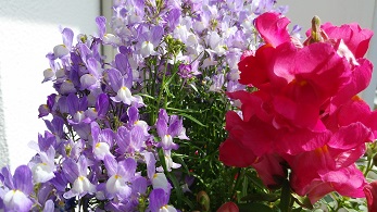 リナリア(姫金魚草)左側 キンギョソウ 右側 2022年4月13日撮影 |