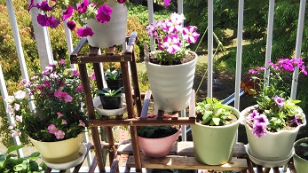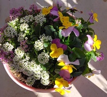 花台に置かれた色々な花 2022年4月13日撮影 |