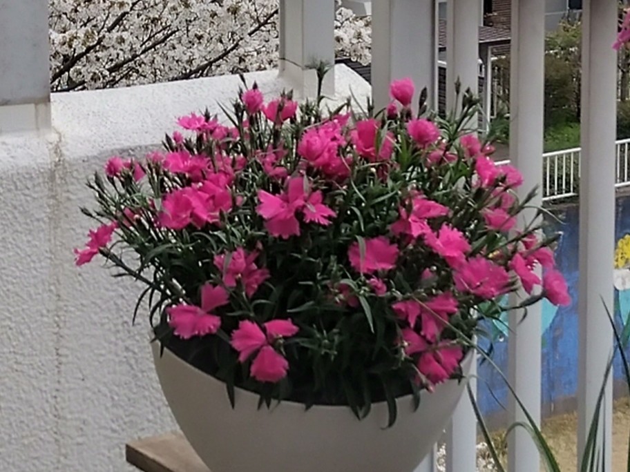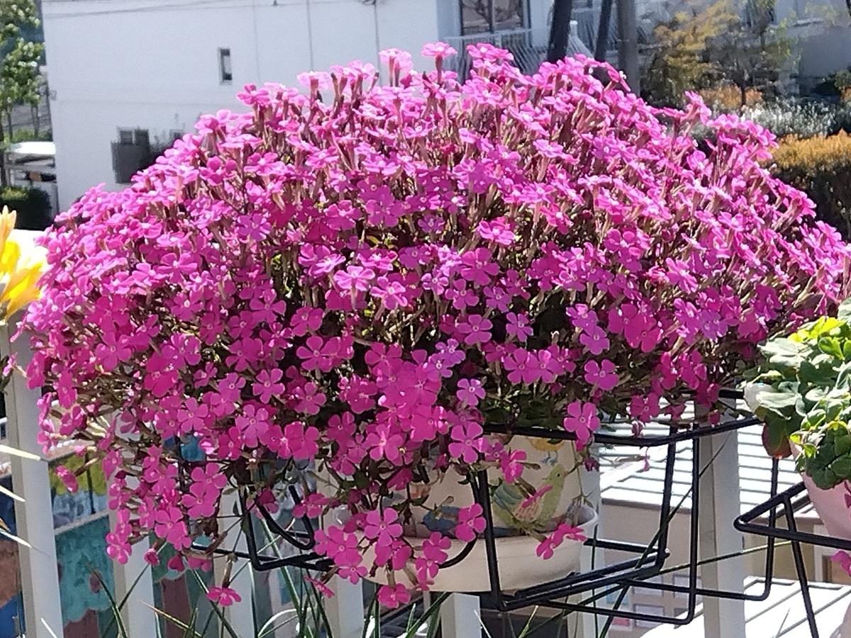 シレネ・ピンクパンサー 開花時期は4月~6月で、日本では夏を越せないので1年草の扱い 日当たりが良いのでもう咲き始めている なお、花の真ん中に紫とか青っぽい雄しべがたくさんある状態ならツルコザクラである