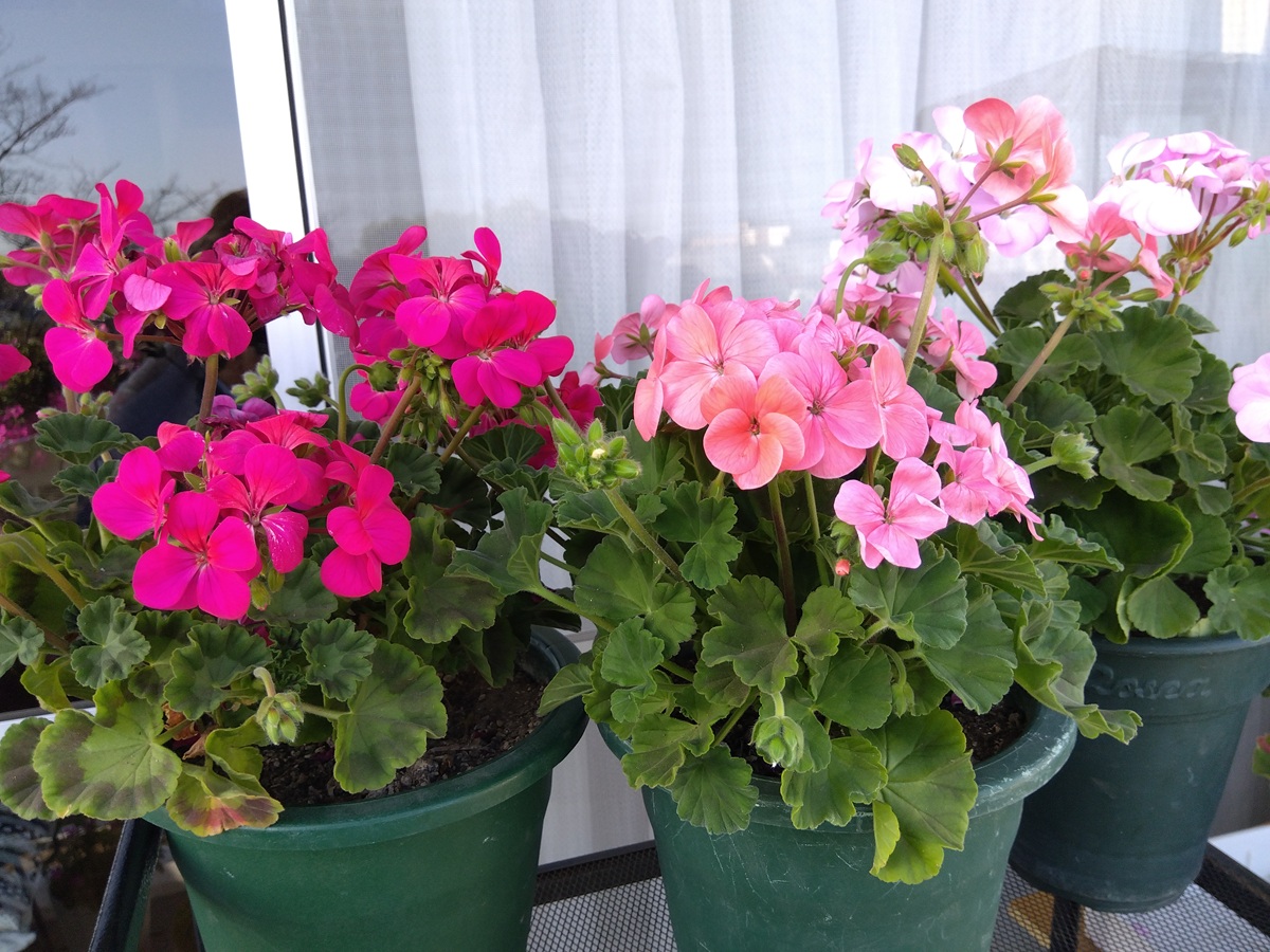 ゼラニウム 四季咲き性で適温ならば、一年中咲き、一重咲から八重咲まである
