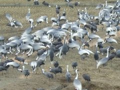 飛来したツルを、出水市にあるツル観察センターの展望所から見ることができた