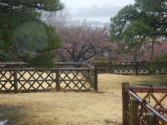 偕楽園の見晴広場の南側に、蕾の紅梅が見えた。