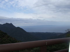 ヤクスギランドに行く途中、山の中腹から遠く種子島を雲の下に眺める。