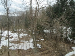 秋田新幹線の「大館駅」を過ぎた山間部の日陰のところで、残雪を見ることができた