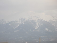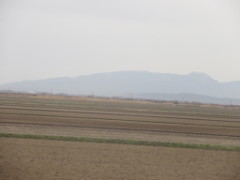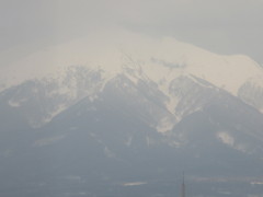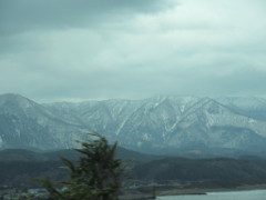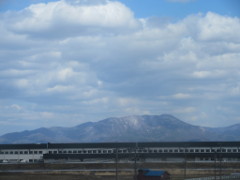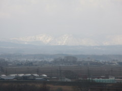 上の3枚目の写真は、新青森駅到着前の所から見た山並みで岩木山や白神山地方向と思われる