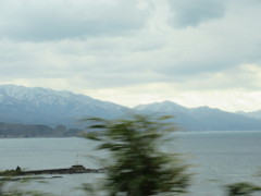 13時13分の撮影であるが、此処では一転して、どんよりとした雲模様で、この雲と山の雪景色、併せて日本海とが、何かもの悲しさを感じさせた