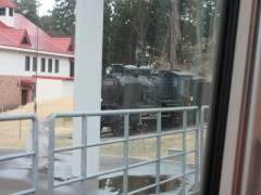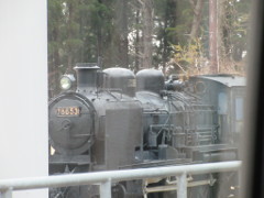 ウェスパ椿山駅の駅傍に蒸気機関車が展示され、周辺には、ガラス工房(写真赤色の屋根・白色の壁の建物)、展望温泉施設、レストランもあり、ヨーロッパ風の建物が立ち並んでいた 全景の写真撮れず残念