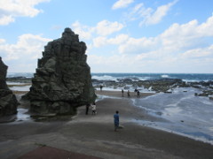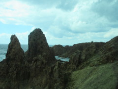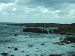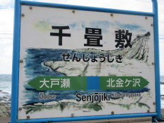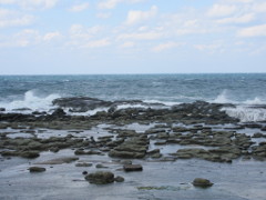 その後、海岸まで行き千畳敷を見た 岩畳の見える広さは、潮の干満で違うようで、今回は満潮気味かも