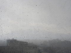 山は「岩木山(いわきさん)」で、雨や霙の降っていたときのもので、上の左の写真撮影時は17時14分、その隣の写真は1分後のものである