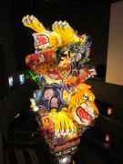 材料は、木・針金・糸・和紙など、内部に仕込まれる照明は、電球600〜800個、蛍光灯40〜60本である】