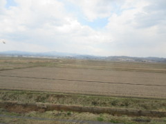 田園風景の遠くに「寒風(かんぷうざん)」らしき山並みが見える