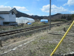 「十二湖(じゅうにこ)駅」と「ウェスパ椿山(うえすぱ つばきやま)駅」間で、列車の後方を向いて撮影した白神山地