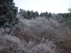 阿蘇パノラマラインを走行中に、樹氷状態の木々をみる