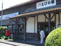 「えびの駅」は、九州旅客鉄道(JR九州)吉都線の駅で、駅舎は木造・無人駅 昔ながらの改札口が、後ろに見える