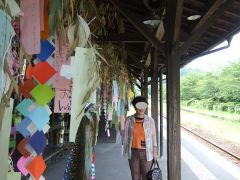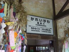 「嘉例川駅(かれいがわえき)」は、九州旅客鉄道(JR九州)肥薩線の駅で、駅舎は木造・無人駅である 駅舎の入り口に、まだ七夕の飾りがあった