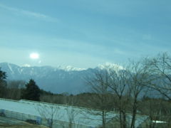 バス内から、茅野辺りで北アルプス(飛騨山脈)の山並が望めた