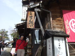 馬籠宿にある手焼き煎餅のお店「うさぎや」で、「餅焼きせんべい」を買い、散策しながら食べた