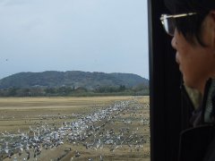ツル観察センターの2階ツル展望所から見ているところ