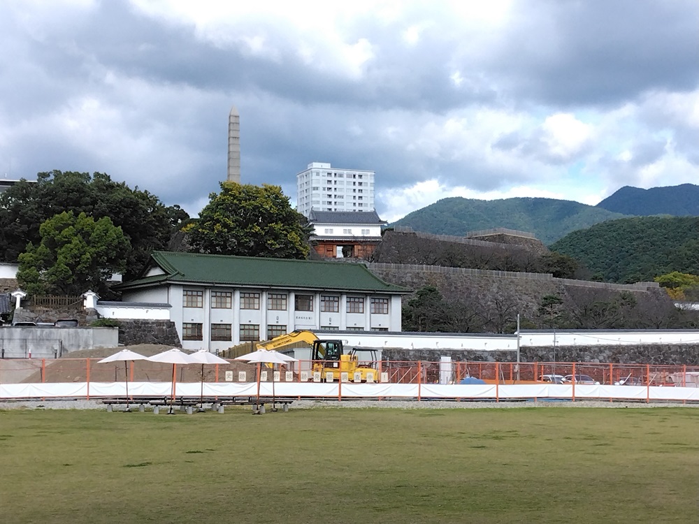 「The view of the south side of the castle ruins from Koubai North Street.」