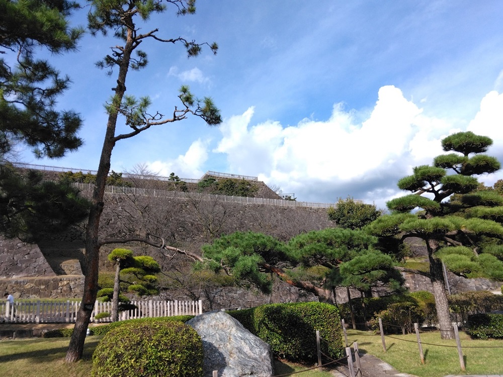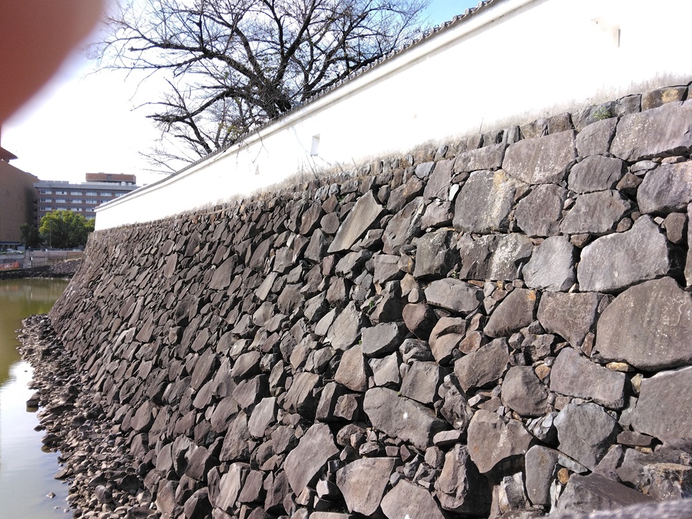 "The stone walls of the inner moat seen from 'Yukibashi'."