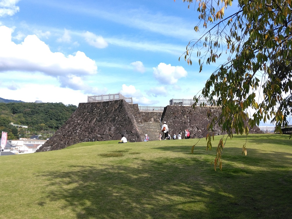 石垣の石は、ほとんど加工せずに積んでいく方法の野面積み 築城は、1583年(天正11年)に始まったとのこと
