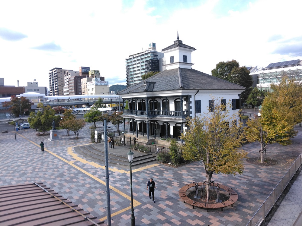 "The memorial hall is located next to the statue of Lord Takeda Nobutora at the Assist Engineering Yocchappare Plaza, north exit of Kofu Station."