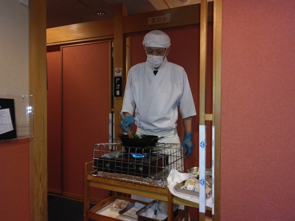 料理人が食事処に来て、目の前で天ぷらを揚げてくれた