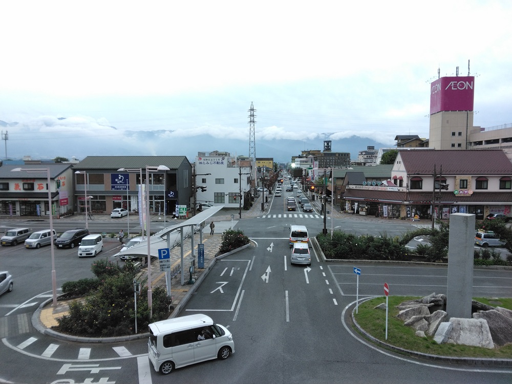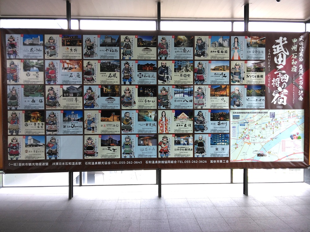 甲府駅北口から駅内に入り、ここから石和温泉駅に向かい、南口から歩いて宿泊先の