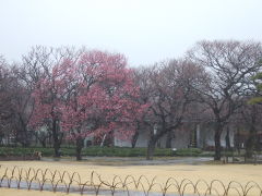 見晴広場北側のこの紅梅のみが、他のものより花開いていた