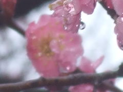 雨に濡れた紅梅
