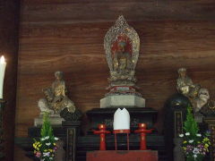 仏殿(国宝)にある、本尊の釈迦三尊像(釈迦如来・文殊菩薩(右)普賢菩薩(左))