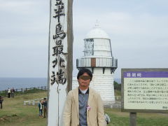 能登半島最北端の禄剛ア(ろくごうさき)の灯台をバックに
