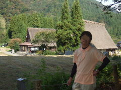 国指定重要文化財の本家「上時国家」(かみときくにけ)をバックに