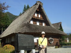 富山県南砺市(なんとし)にある五箇山合掌造りの集落をバックに