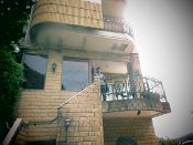 湯河原の駅近くの高台に位置する「ホテル眺望山荘」の玄関前で撮影